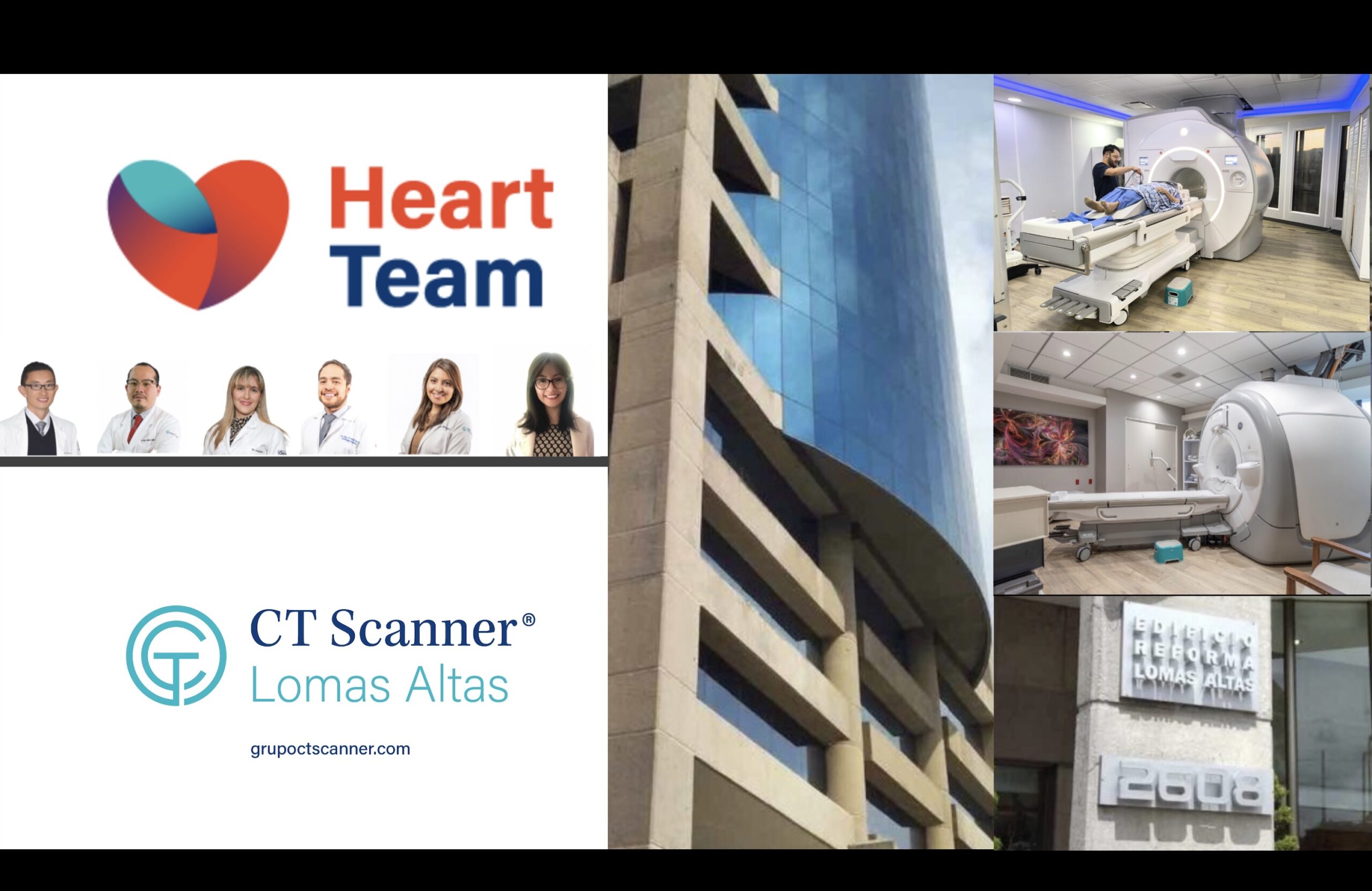 Top left: Heart Team at CT Scanner Lomas altas including the General Director, Dr Eric Kimura-Hayama, Dr Moisés Jiménez-Santos (Cardiologist-Head of the Heart Team), Dr Nelsy González – (Cardiologist), Dr Jorge Silva-Estrada (Pediatric cardiologist), Dr Ana María Rosas-Vázquez (Radiologist), and Dr Laura Victoria Torres-Araujo (Cardiologist CMR specialist).